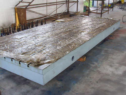 大型T型槽平臺(tái)的生產(chǎn)過(guò)程中會(huì)出現(xiàn)一些產(chǎn)品缺陷,只要采用正確的方法可以進(jìn)行工藝彌補(bǔ),鑄鐵平板工作面的缺陷是不可以忽視的重要部位,鑄鐵平板主要的缺陷包括:氣孔、沙孔、夾沙、縮松等。所以對(duì)鑄鐵平板的缺陷做時(shí)要嚴(yán)格按工藝要求處理。